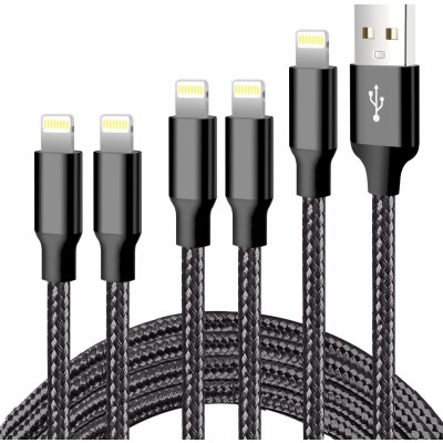 5 Pack 3/3/6/6/10FT MFi Certified USB Lightning Cable Nylon Braided Fast Charging Cord Compatible for iPhone/iPad/iPod