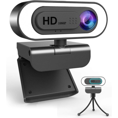 Streaming Webcam with Microphone Ring Light-HD 1080P Face Web Cam with Privacy Cover&Tripod for Desktop/Laptop/PC/MAC